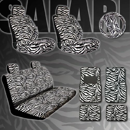 13 Piece Safari Animal Print Automotive Interior Gift Set - 2 Low Back Front Bucket Seat Covers with Separate Headrest Cover, 1 Steering Wheel Cover, 2 Shoulder Harness Pressure Relief Cover, 1 Bench Cover and 2 Rear Headrest Covers - Snow Leopard Review